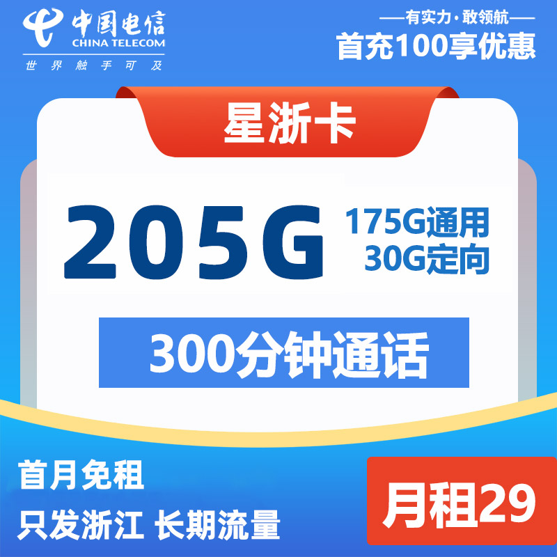 【只发浙江】电信星溪卡 29元145G+300分钟