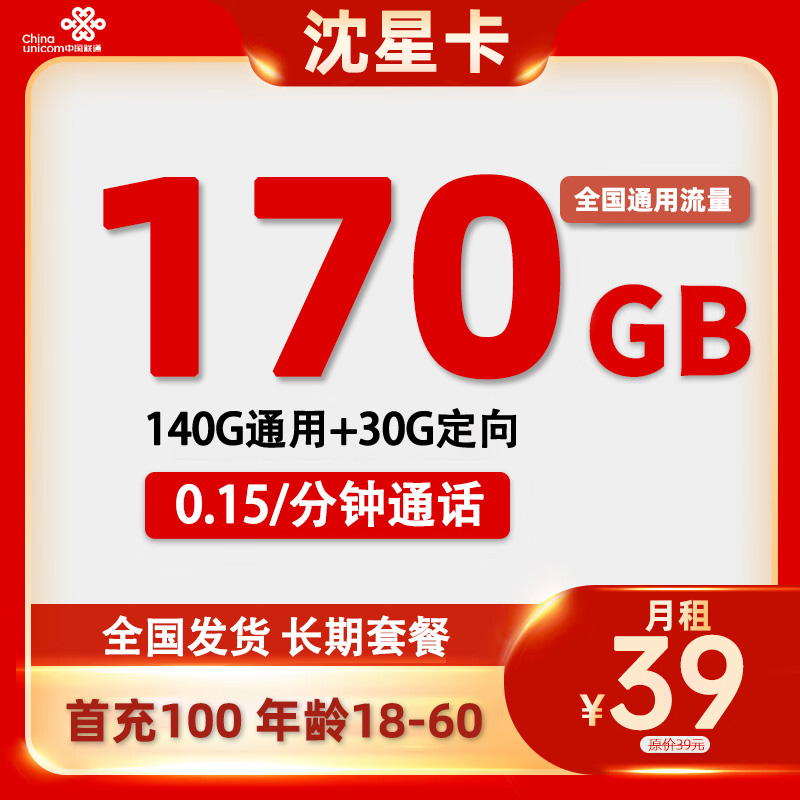 【浙江专属】联通29元150G通用+100分钟语音通话